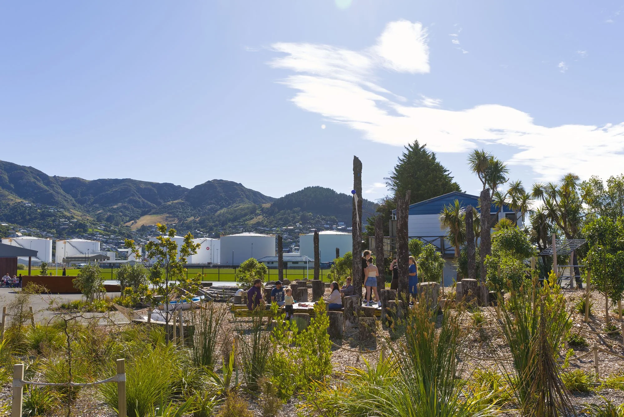 The design draws on the local vernacular, repurposing LPC wharf timbers, using rusticated metals, and yellow handrails that echo nearby tanks. Wharf timbers express the original seabed depths, while the wheke (octopus) inspires a mounded playspace which was designed through collaborative workshops with the adjacent Sea Scouts. It is a project designed for the locals, with the locals â people and wildlife alike.